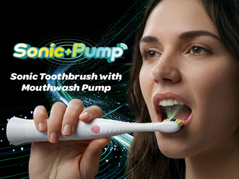 iMusthav SonicPump Electric Toothbrush – Battery Operated with Built-in Mouthwash Reservoir & Pump, Gentle Bristles 3 Sonic Mode, Smart Timer for Fresh Breath & Daily Oral Hygiene