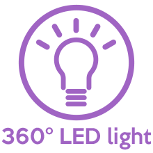 The 360-degree warm white LED illuminates the blade tip for easy use in all lighting conditions, eliminating blind spots and targeting the finest stray hairs.